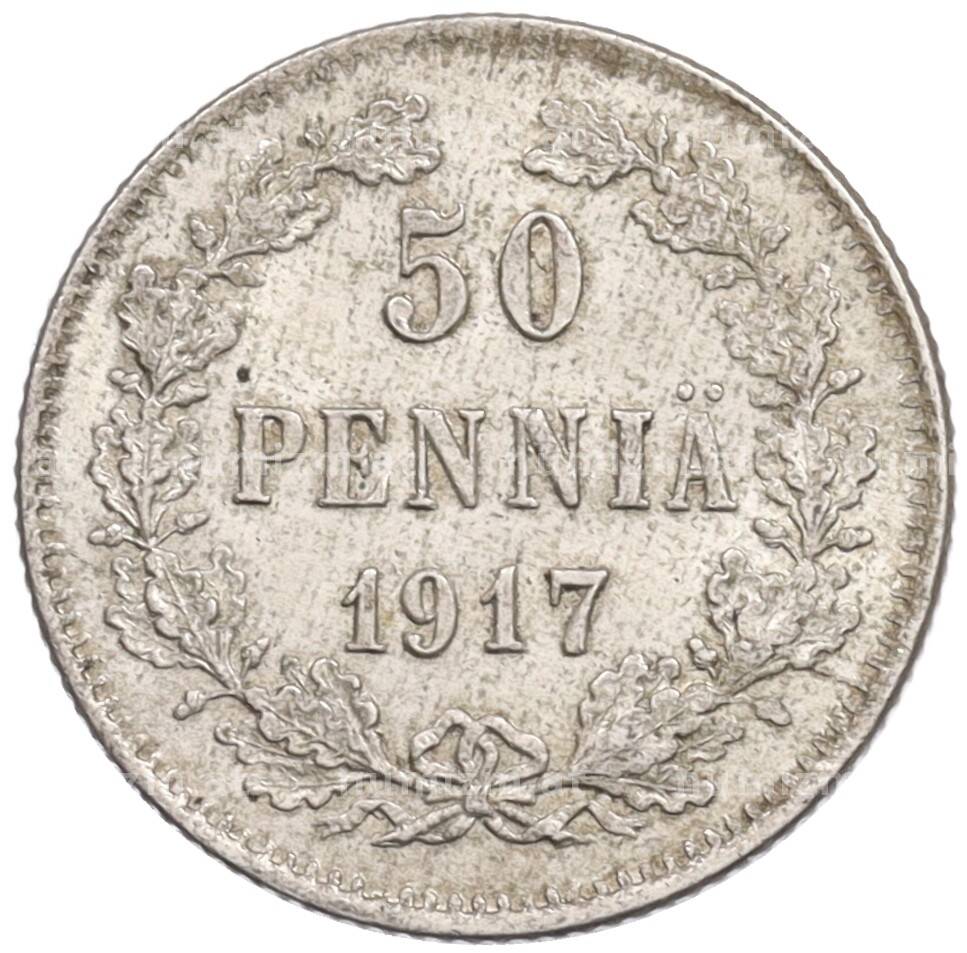 Монета 50 пенни 1917 года Русская Финляндия — Орел без корон (Временное правительство) [Артикул: K10-0734]
