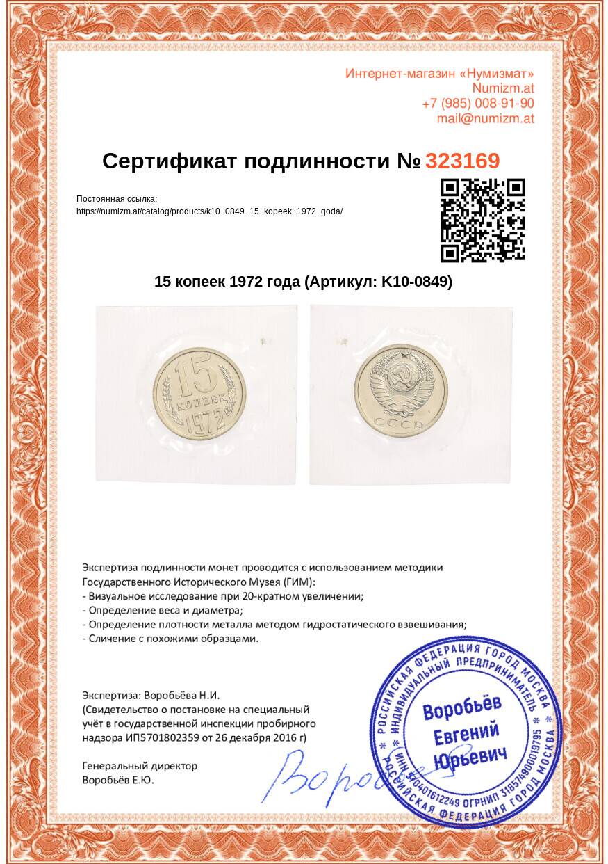 20.01.2025Интернет магазин «Нумизмат» предлагает приобрести 15 копеек 1972 года.