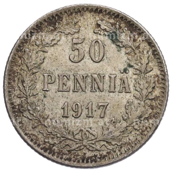Монета 50 пенни 1917 года Русская Финляндия — Орел без корон (Временное правительство) [Артикул: K10-0975]