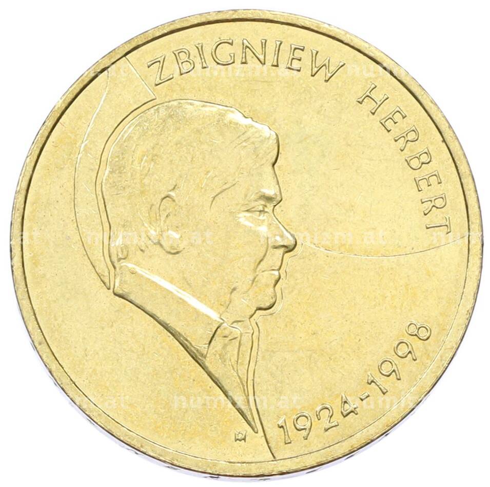 Монета 2 злотых 2008 года Польша «10 лет со дня смерти Збигнева Херберта» (Артикул: K10-10055): подробные характеристики, качественные фотографии в высоком разрешении, низкая цена.