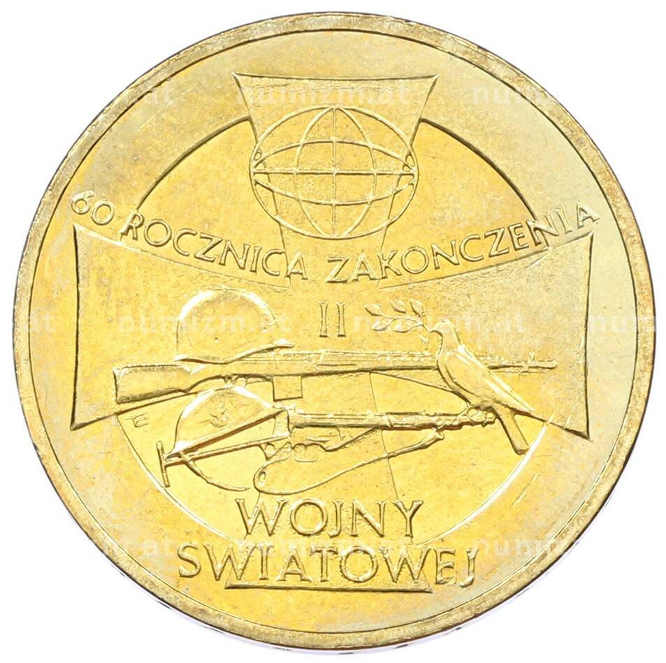 Монета 2 злотых 2005 года Польша «60 лет окончанию Второй мировой войны» (Артикул: K10-10227): подробные характеристики, качественные фотографии в высоком разрешении, низкая цена.