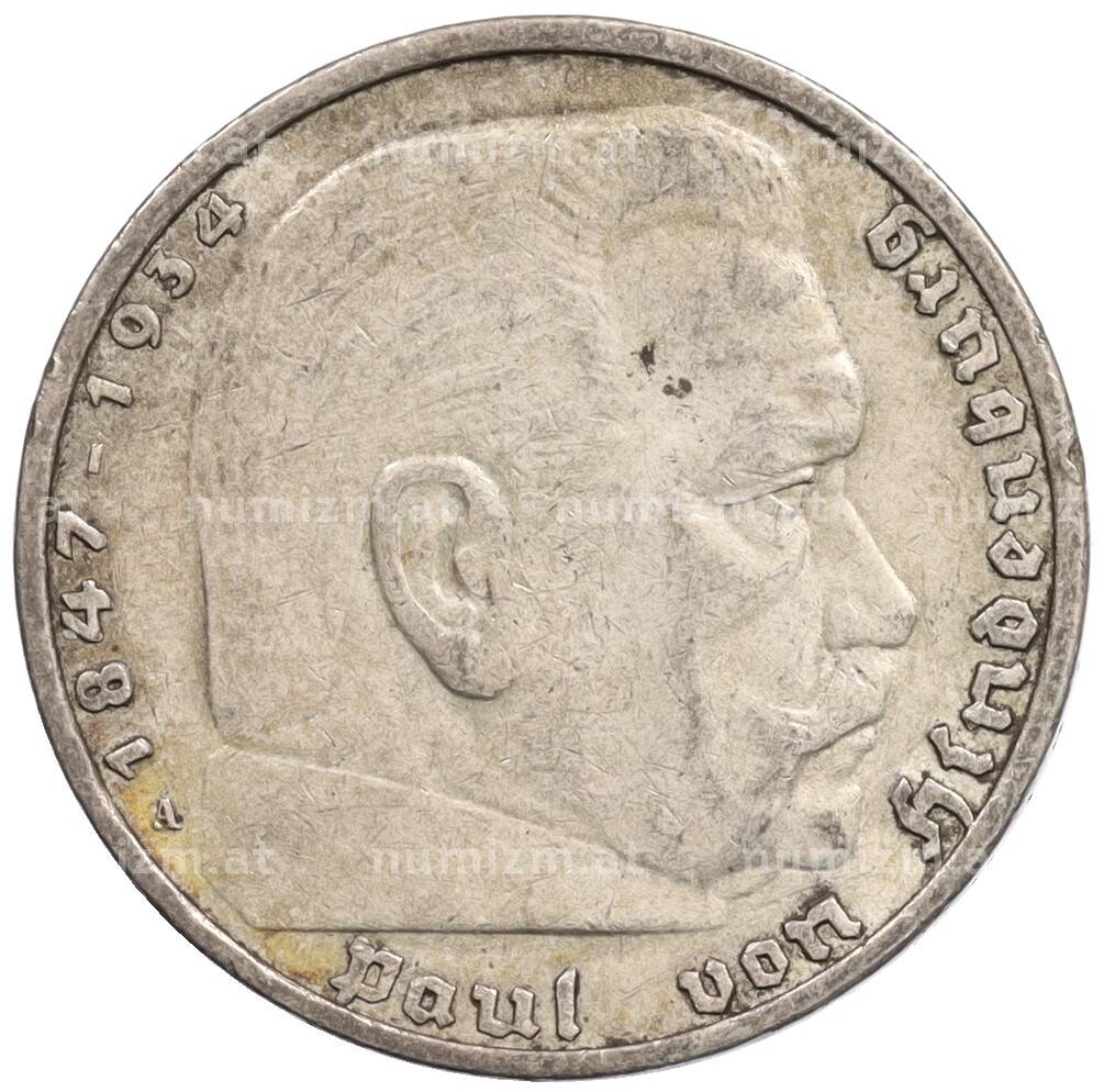 Интернет магазин «Нумизмат» предлагает приобрести 5 рейхсмарок 1936 года A Германия.