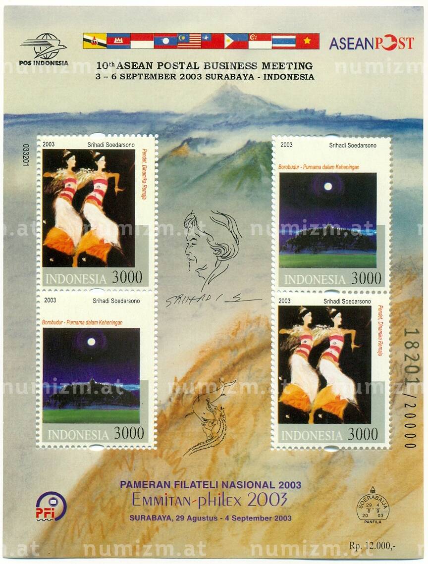 20.01.2025Интернет магазин «Нумизмат» предлагает приобрести Полный лист марок 2003 года Индонезия «Национальная выставка почтовых марок Emmitan-Philex».