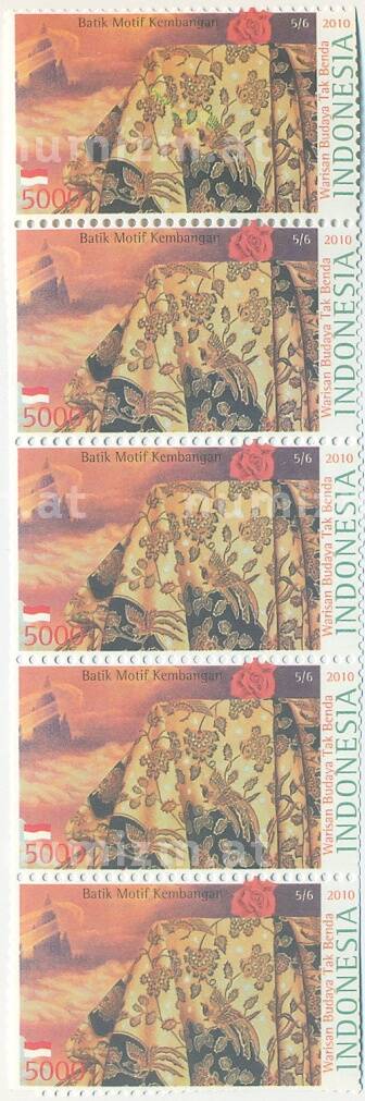 20.01.2025Интернет магазин «Нумизмат» предлагает приобрести Сцепка из 5 марок 5000 рупий 2010 года Индонезия «Национальное культурное наследие».