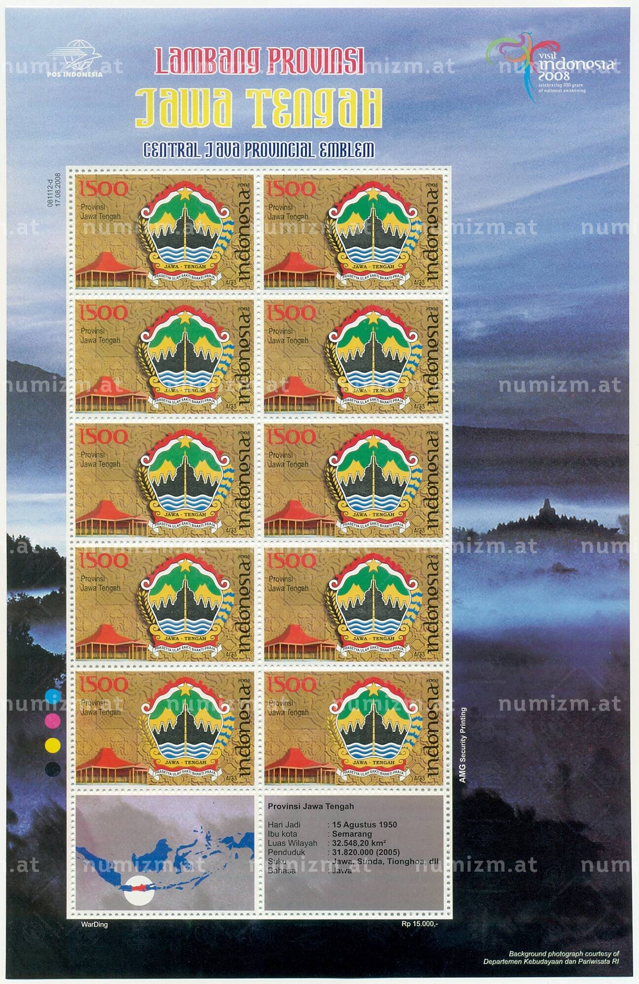 Купить Полный лист марок 2008 года Индонезия «Эмблемы провинций — Центральная Ява» по привлекательной цене можно в нашем интернет-магазине — Вам достаточно оформить заказ на сайте. Все монеты, представленные в каталоге, находятся в наличии на нашем складе.