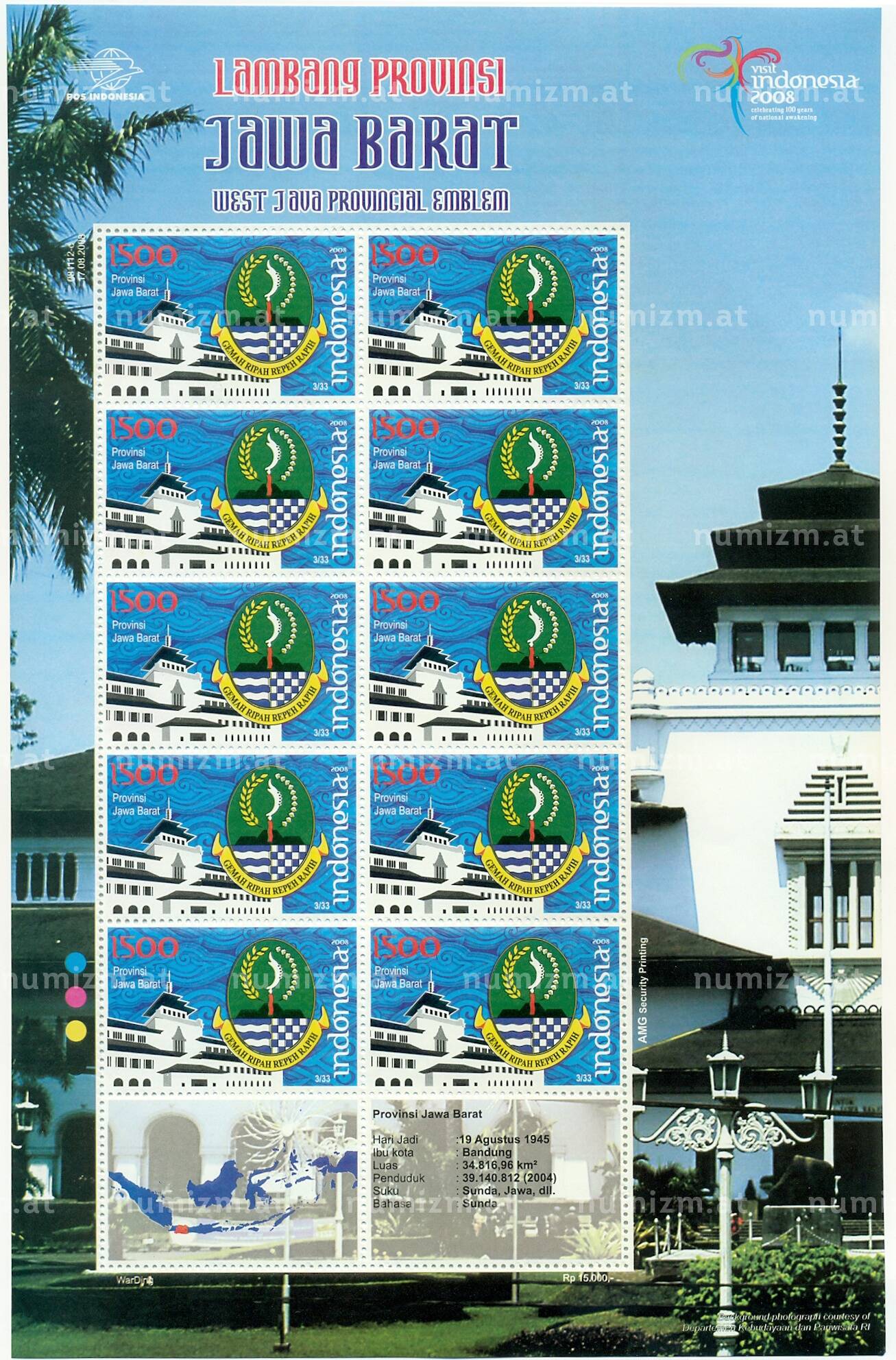 Купить Полный лист марок 2008 года Индонезия «Эмблемы провинций — Западная Ява» по привлекательной цене можно в нашем интернет-магазине — Вам достаточно оформить заказ на сайте. Все монеты, представленные в каталоге, находятся в наличии на нашем складе.
