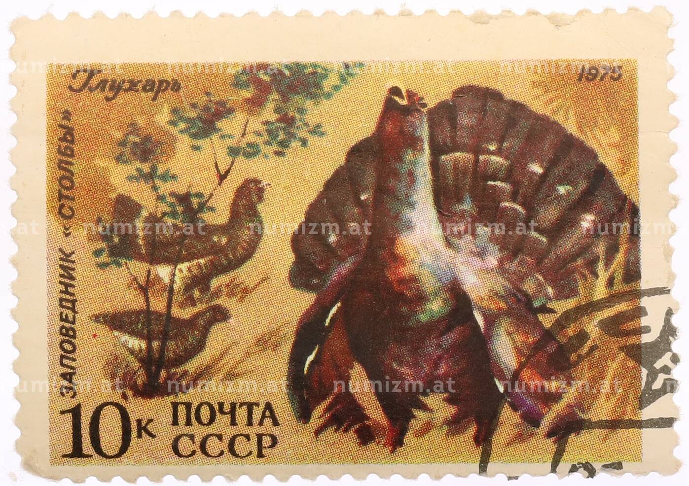 20.01.2025Интернет магазин «Нумизмат» предлагает приобрести Почтовая марка 10 копеек 1975 года «Заповедник Столбы — Глухарь».