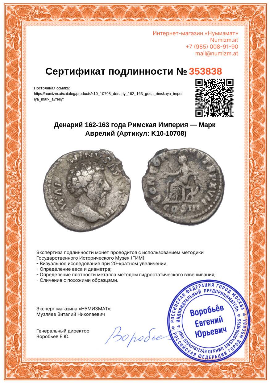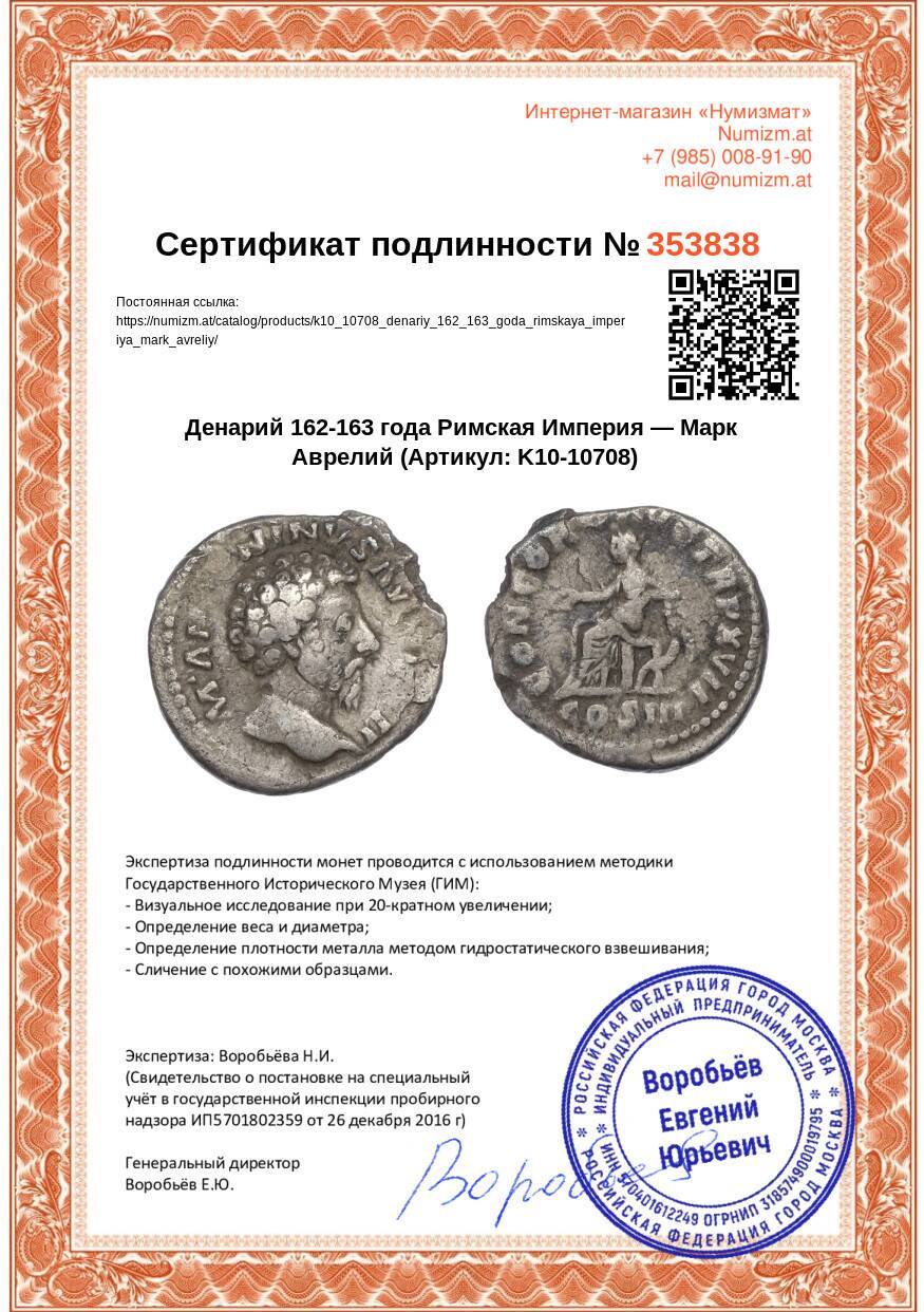 Купить Денарий 162-163 года Римская Империя — Марк Аврелий по привлекательной цене можно в нашем интернет-магазине — Вам достаточно оформить заказ на сайте. Все монеты, представленные в каталоге, находятся в наличии на нашем складе.