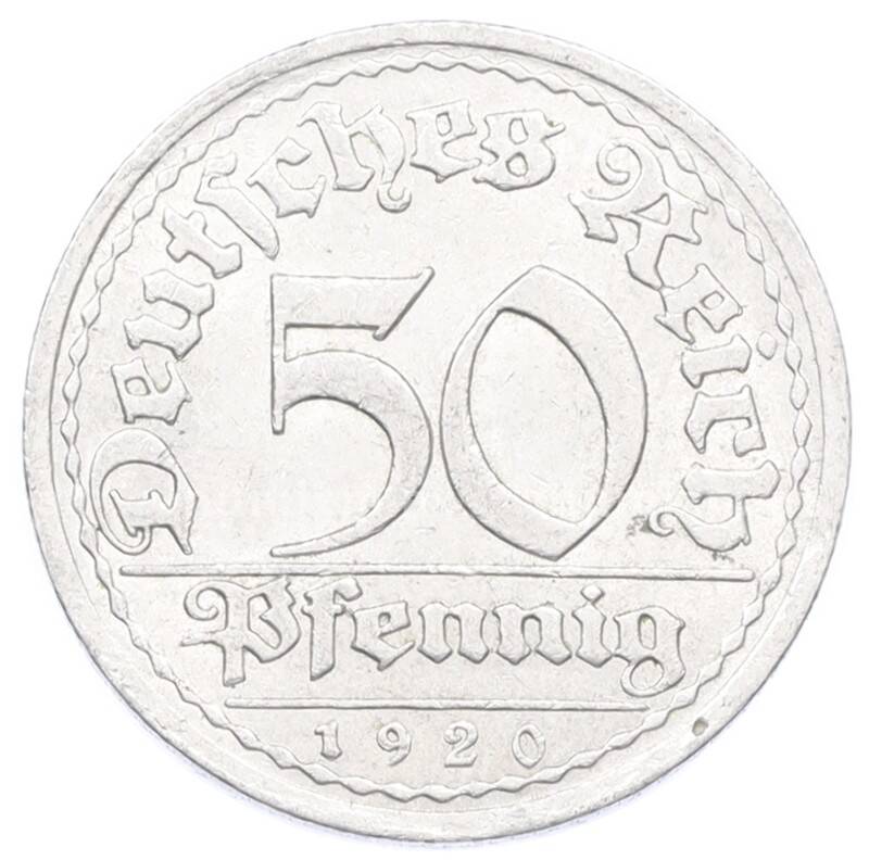 • Монета 50 пфеннигов 1920 года A Германия (Артикул: K10-10885) — Фото №1 Монета 50 пфеннигов 1920 года A Германия (Артикул: K10-10885) — Фото №2