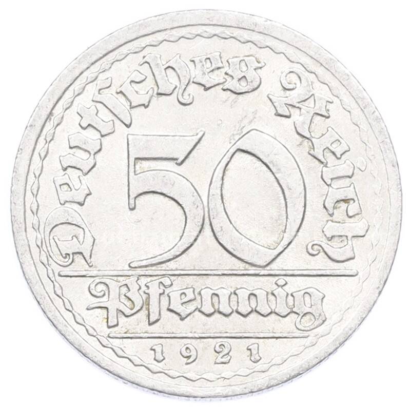 Купить 50 пфеннигов 1921 года J Германия по привлекательной цене можно в нашем интернет-магазине — Вам достаточно оформить заказ на сайте. Все монеты, представленные в каталоге, находятся в наличии на нашем складе.