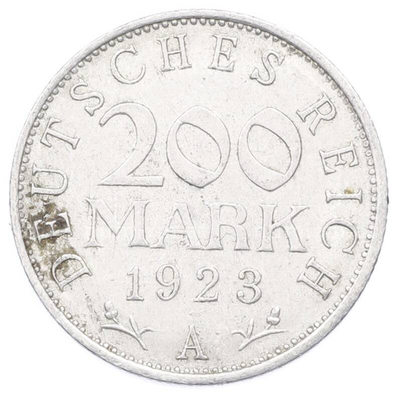 Купить 200 марок 1923 года A Германия по привлекательной цене можно в нашем интернет-магазине — Вам достаточно оформить заказ на сайте. Все монеты, представленные в каталоге, находятся в наличии на нашем складе.