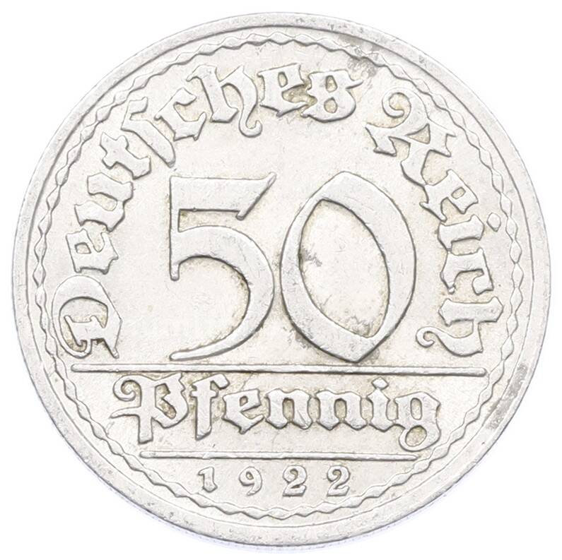 Купить 50 пфеннигов 1922 года J Германия по привлекательной цене можно в нашем интернет-магазине — Вам достаточно оформить заказ на сайте. Все монеты, представленные в каталоге, находятся в наличии на нашем складе.