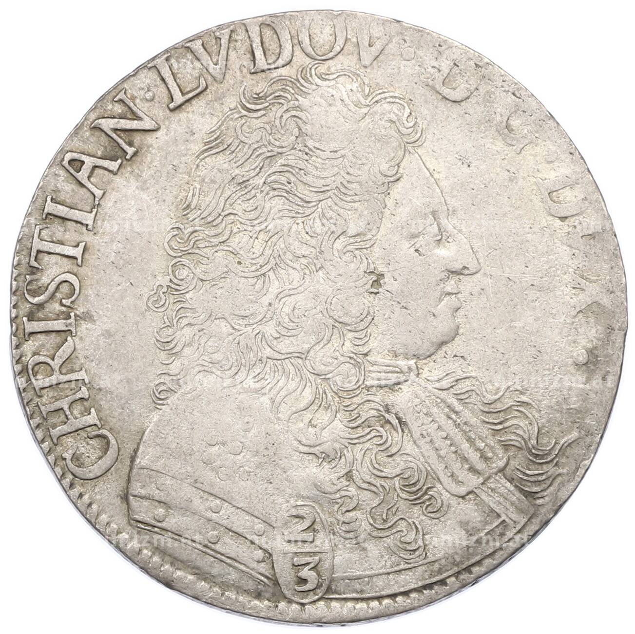 Купить 2/3 таллера 1678 года Мекленбург-Шверин (Кристиан Людвиг I Мекленбургский) по привлекательной цене можно в нашем интернет-магазине — Вам достаточно оформить заказ на сайте. Все монеты, представленные в каталоге, находятся в наличии на нашем складе.