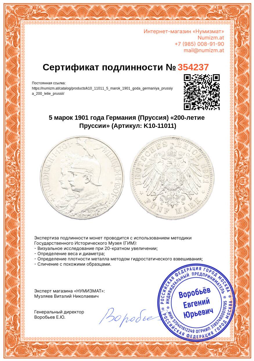 Купить 5 марок 1901 года Германия (Пруссия) «200-летие Пруссии» по привлекательной цене можно в нашем интернет-магазине — Вам достаточно оформить заказ на сайте. Все монеты, представленные в каталоге, находятся в наличии на нашем складе.