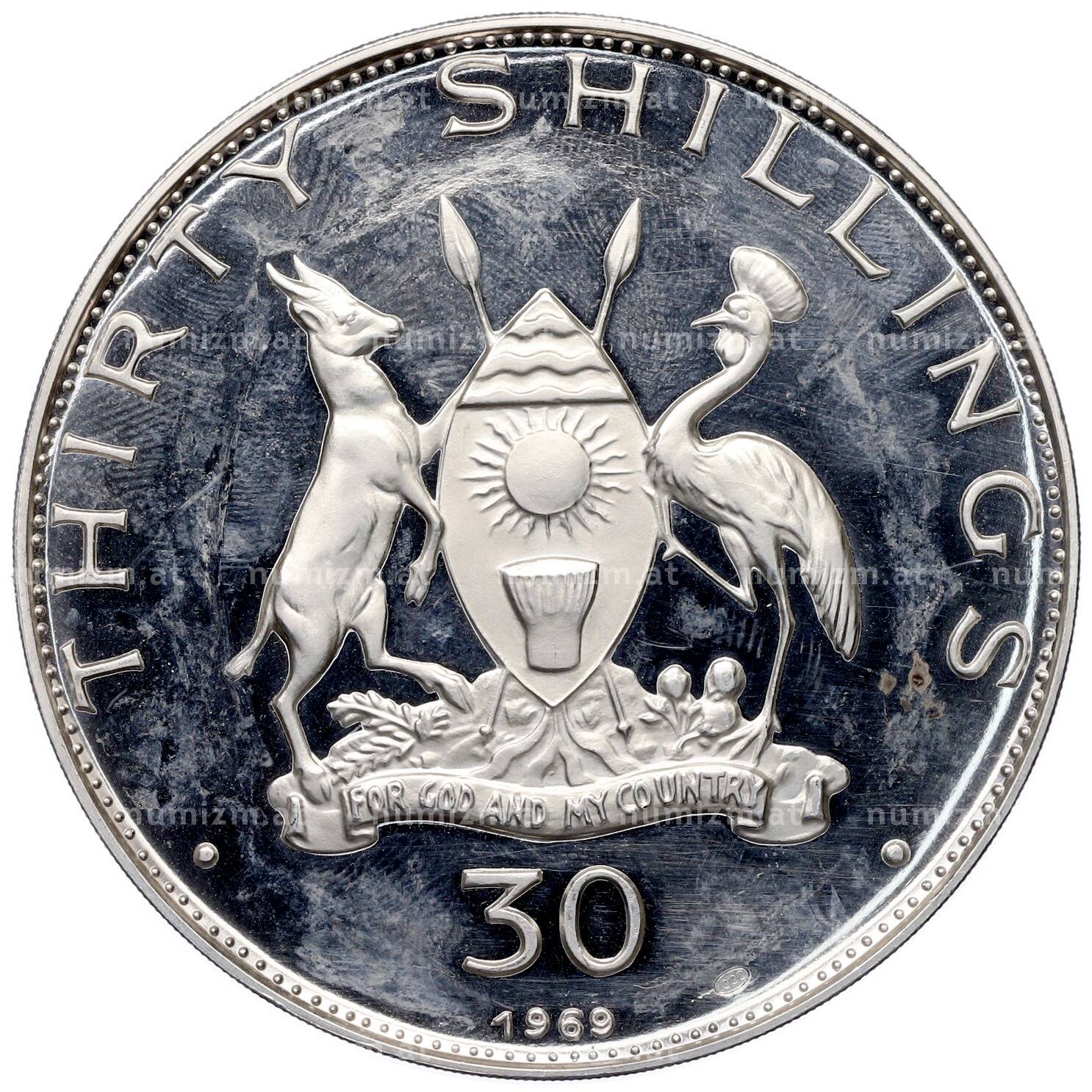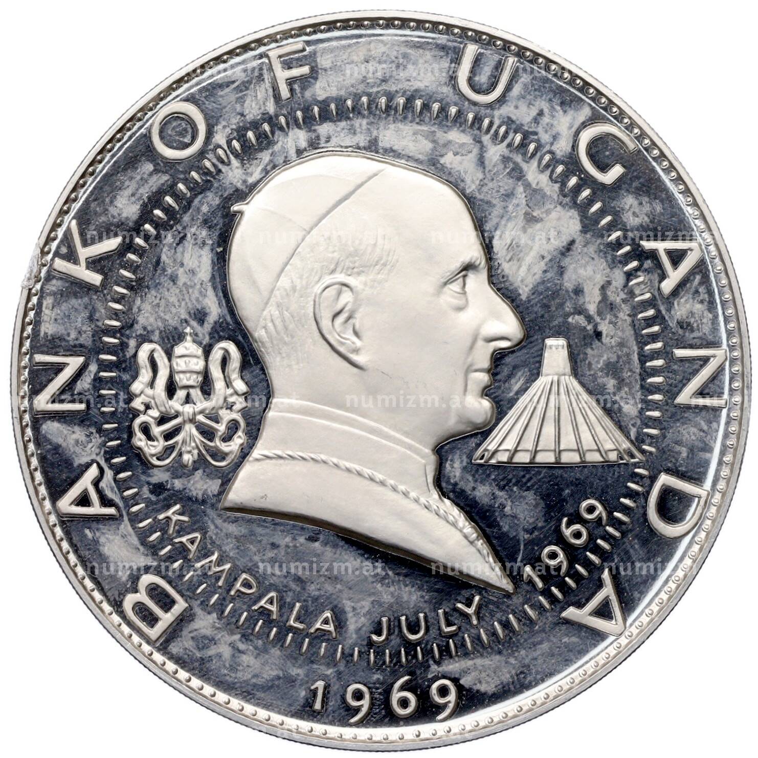 Купить 30 шиллингов 1969 года Уганда «Визит Папы Римского Павла VI» по привлекательной цене можно в нашем интернет-магазине — Вам достаточно оформить заказ на сайте. Все монеты, представленные в каталоге, находятся в наличии на нашем складе.