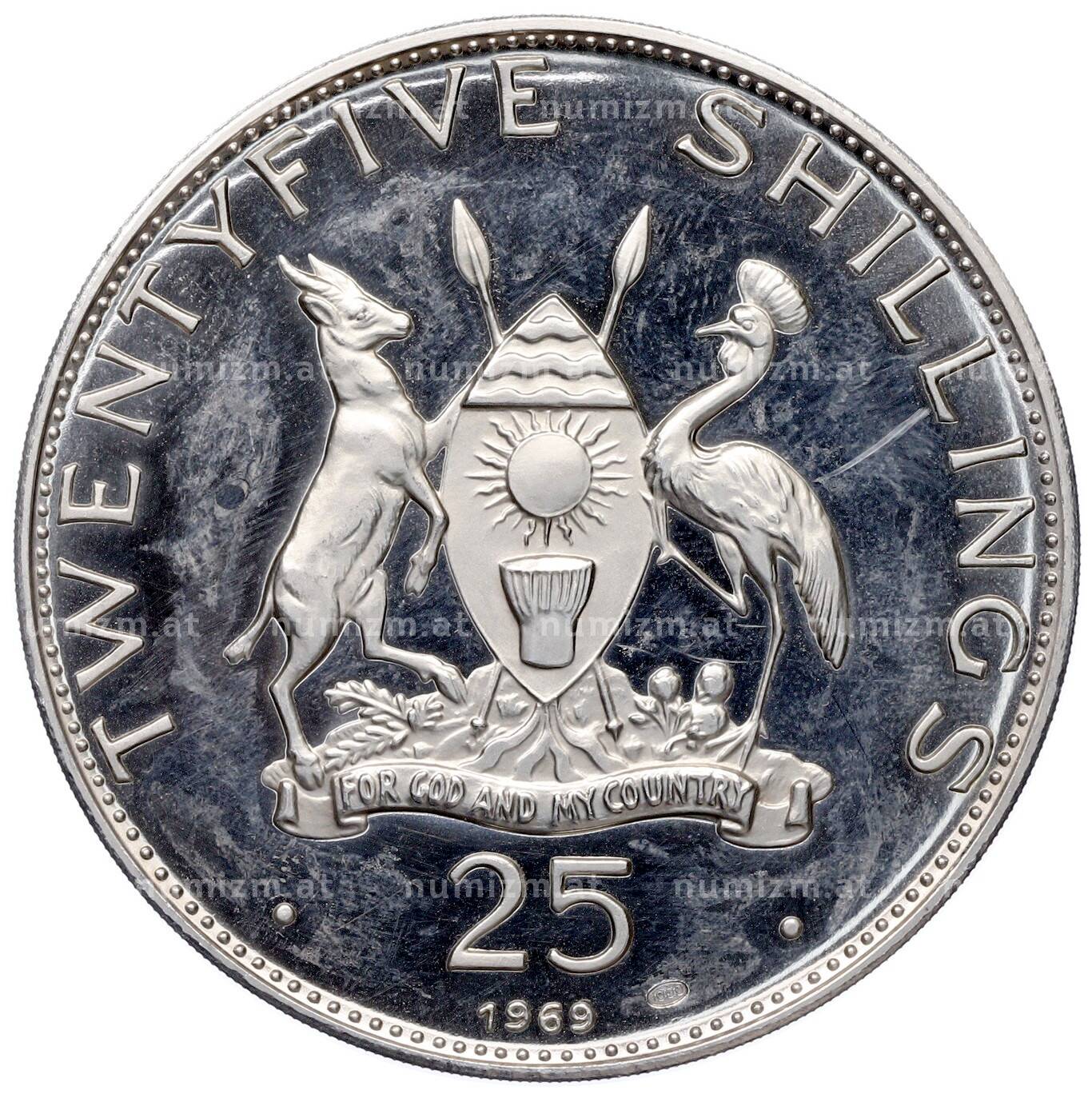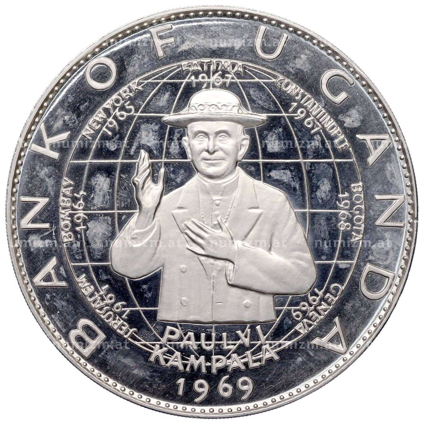 Купить 25 шиллингов 1969 года Уганда «Визит Папы Римского Павла VI» по привлекательной цене можно в нашем интернет-магазине — Вам достаточно оформить заказ на сайте. Все монеты, представленные в каталоге, находятся в наличии на нашем складе.