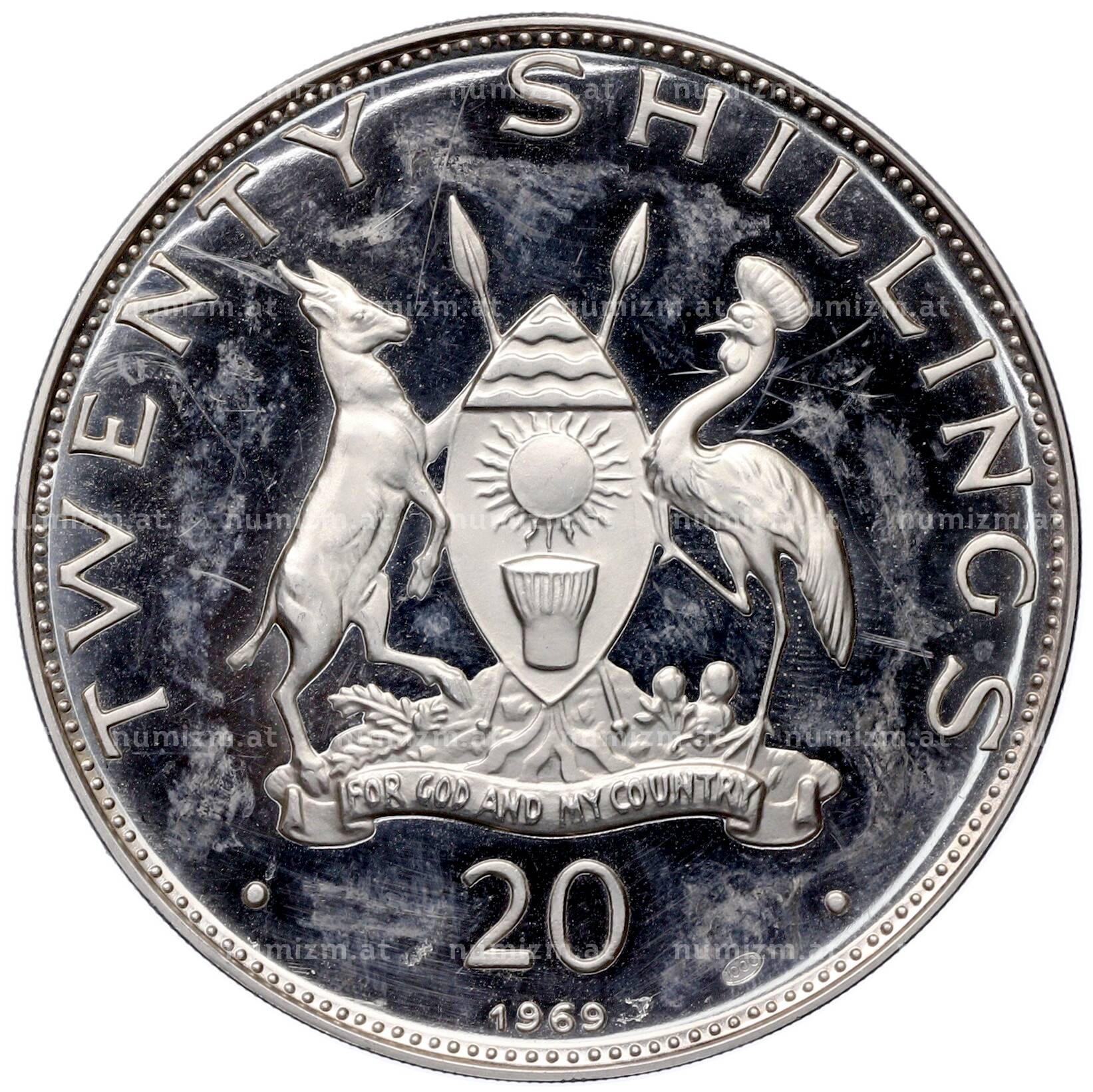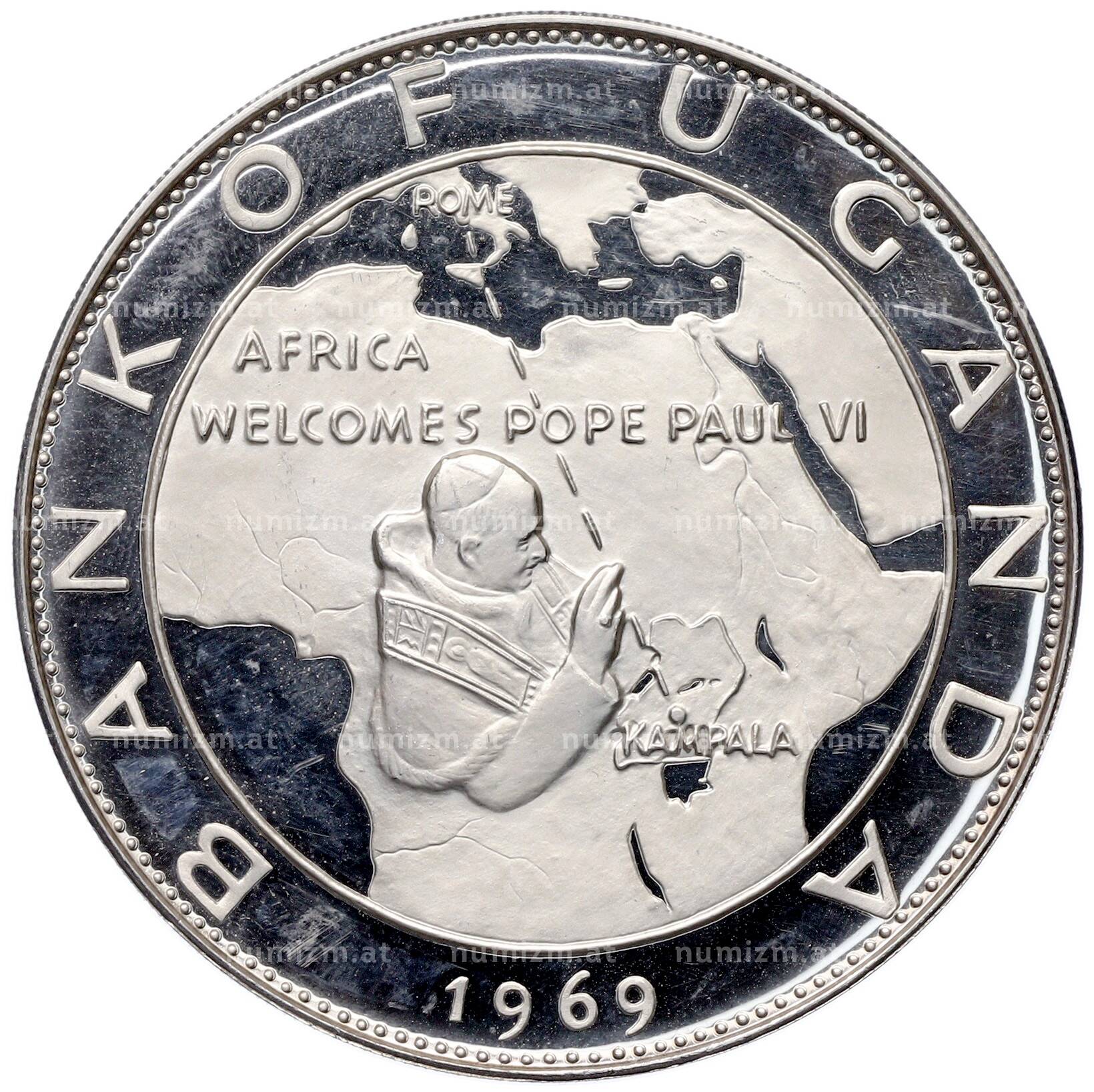 Купить 20 шиллингов 1969 года Уганда «Визит Папы Римского Павла VI» по привлекательной цене можно в нашем интернет-магазине — Вам достаточно оформить заказ на сайте. Все монеты, представленные в каталоге, находятся в наличии на нашем складе.