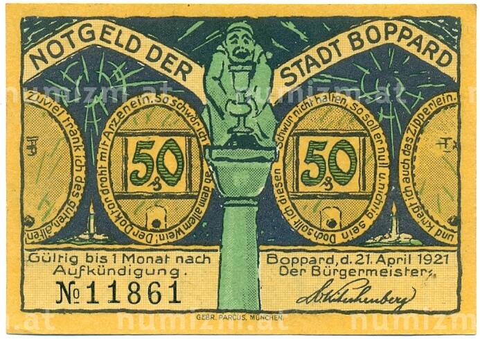 Банкнота 50 пфеннигов 1921 года Германия — Боппард (Нотгельд) (Артикул: K10-11342): подробные характеристики, качественные фотографии в высоком разрешении, низкая цена.