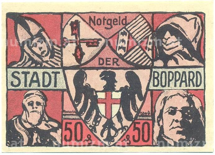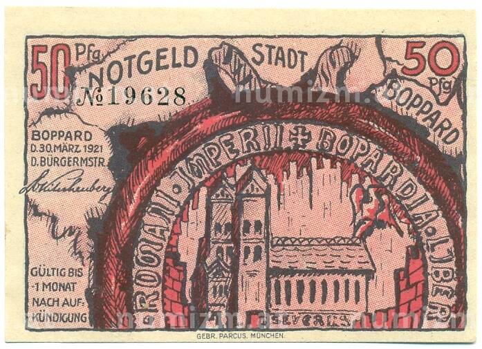 Банкнота 50 пфеннигов 1921 года Германия — Боппард (Нотгельд) (Артикул: K10-11349): подробные характеристики, качественные фотографии в высоком разрешении, низкая цена.