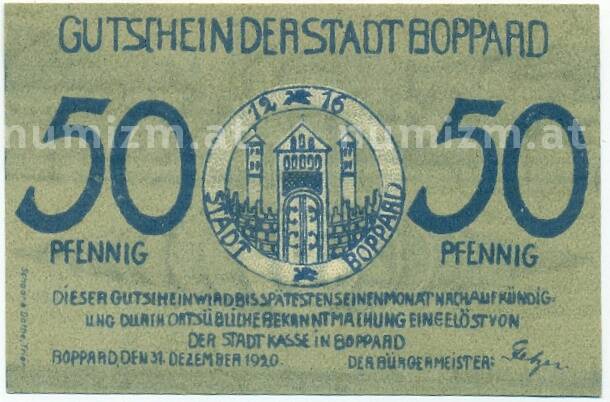 20.01.2025Интернет магазин «Нумизмат» предлагает приобрести 50 пфеннигов 1920 года Германия — Боппард (Нотгельд).