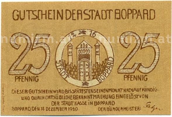 Купить 25 пфеннигов 1920 года Германия — Боппард (Нотгельд) по привлекательной цене можно в нашем интернет-магазине — Вам достаточно оформить заказ на сайте. Все монеты, представленные в каталоге, находятся в наличии на нашем складе.
