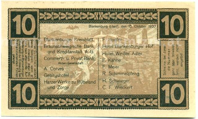 Банкнота 10 пфеннигов 1920 года Германия — Бланкенбург (Нотгельд) (Артикул: K10-11400): подробные характеристики, качественные фотографии в высоком разрешении, низкая цена.