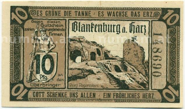 Интернет магазин «Нумизмат» предлагает приобрести 10 пфеннигов 1920 года Германия — Бланкенбург (Нотгельд).