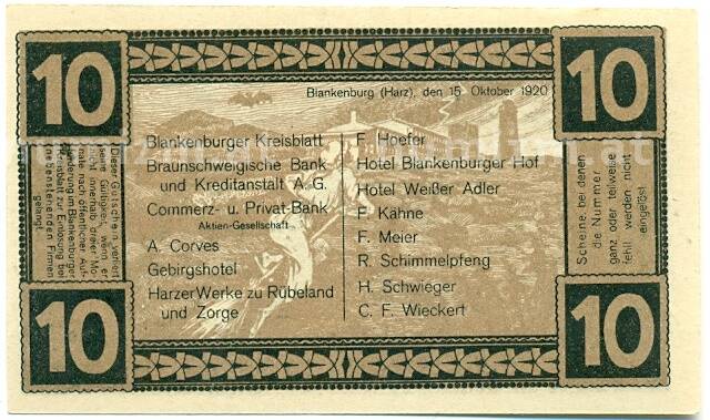 Банкнота 10 пфеннигов 1920 года Германия — Бланкенбург (Нотгельд) (Артикул: K10-11402): подробные характеристики, качественные фотографии в высоком разрешении, низкая цена.