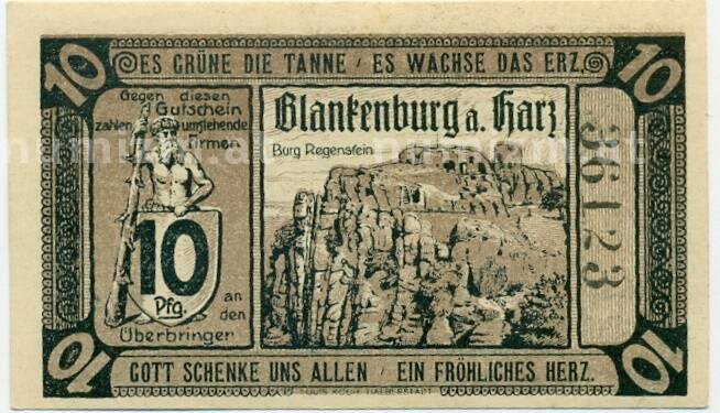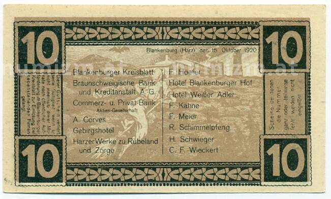 Банкнота 10 пфеннигов 1920 года Германия — Бланкенбург (Нотгельд) (Артикул: K10-11407): подробные характеристики, качественные фотографии в высоком разрешении, низкая цена.