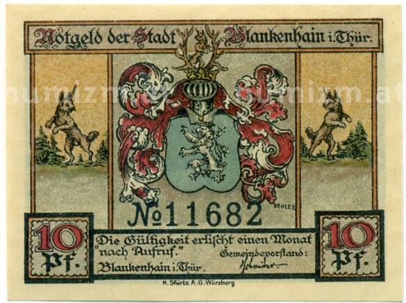 • Банкнота 10 пфеннигов 1921 года Германия — Бланкенхайн (Нотгельд) (Артикул: K10-11421) — Фото №1 Банкнота 10 пфеннигов 1921 года Германия — Бланкенхайн (Нотгельд) (Артикул: K10-11421) — Фото №2