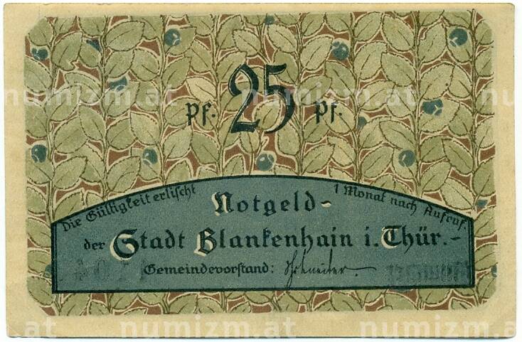 Банкнота 25 пфеннигов 1921 года Германия — Бланкенхайн (Нотгельд) (Артикул: K10-11425): подробные характеристики, качественные фотографии в высоком разрешении, низкая цена.