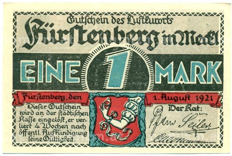 Банкнота 1 марка 1921 года Германия — Фюрстенберг (Нотгельд) (Артикул: K10-11464): подробные характеристики, качественные фотографии в высоком разрешении, низкая цена.