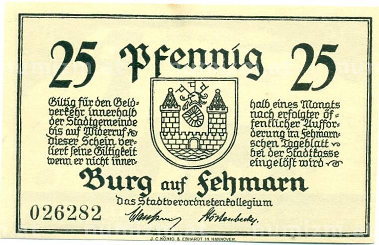 Купить 25 пфеннигов 1921 года Германия — Бург-ауф-Фемарн (Нотгельд) по привлекательной цене можно в нашем интернет-магазине — Вам достаточно оформить заказ на сайте. Все монеты, представленные в каталоге, находятся в наличии на нашем складе.