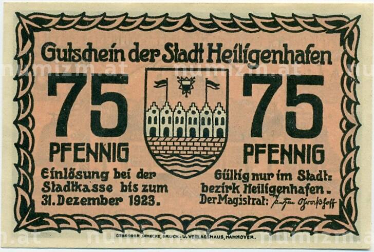 Купить 75 пфеннигов 1921 года Германия — Хайлигендамм (Нотгельд) по привлекательной цене можно в нашем интернет-магазине — Вам достаточно оформить заказ на сайте. Все монеты, представленные в каталоге, находятся в наличии на нашем складе.