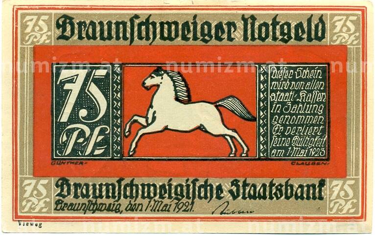 Купить 75 пфеннигов 1921 года Германия — Брансуик (Нотгельд) по привлекательной цене можно в нашем интернет-магазине — Вам достаточно оформить заказ на сайте. Все монеты, представленные в каталоге, находятся в наличии на нашем складе.