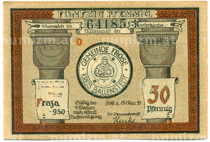 Купить 50 пфеннигов 1921 года Германия — Фрозе (Нотгельд) по привлекательной цене можно в нашем интернет-магазине — Вам достаточно оформить заказ на сайте. Все монеты, представленные в каталоге, находятся в наличии на нашем складе.