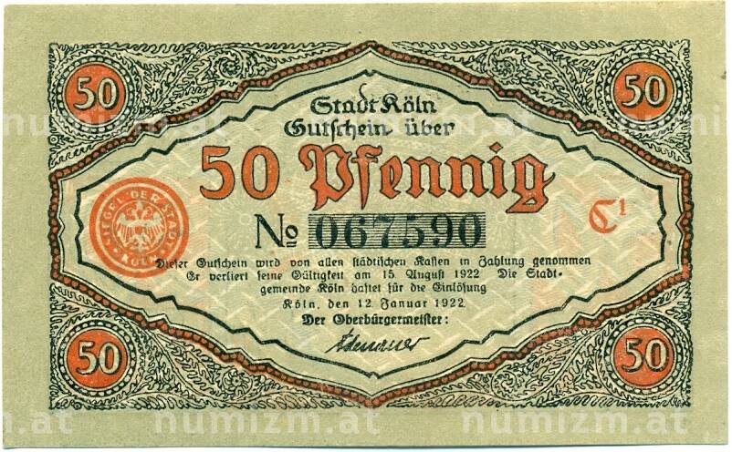 Купить 50 пфеннигов 1922 года Германия — Кельн (Нотгельд) по привлекательной цене можно в нашем интернет-магазине — Вам достаточно оформить заказ на сайте. Все монеты, представленные в каталоге, находятся в наличии на нашем складе.
