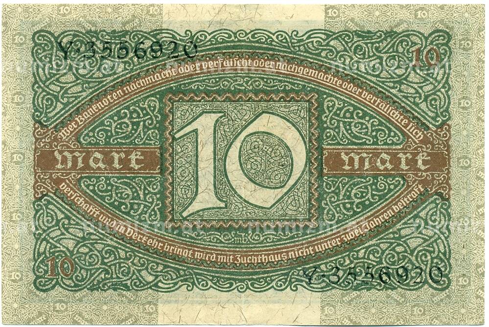 Банкнота 10 марок 1920 года Германия (Артикул: K10-11648): подробные характеристики, качественные фотографии в высоком разрешении, низкая цена.