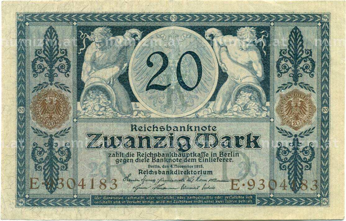 20.01.2025Интернет магазин «Нумизмат» предлагает приобрести 20 марок 1915 года Германия.