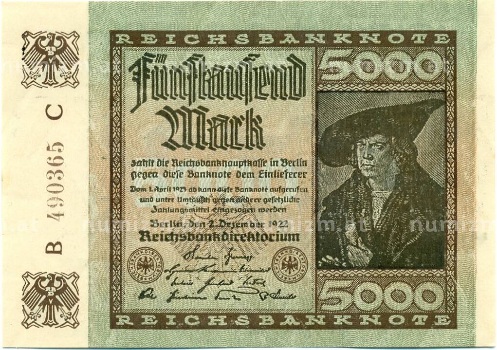 Купить 5000 марок 1922 года Германия по привлекательной цене можно в нашем интернет-магазине — Вам достаточно оформить заказ на сайте. Все монеты, представленные в каталоге, находятся в наличии на нашем складе.