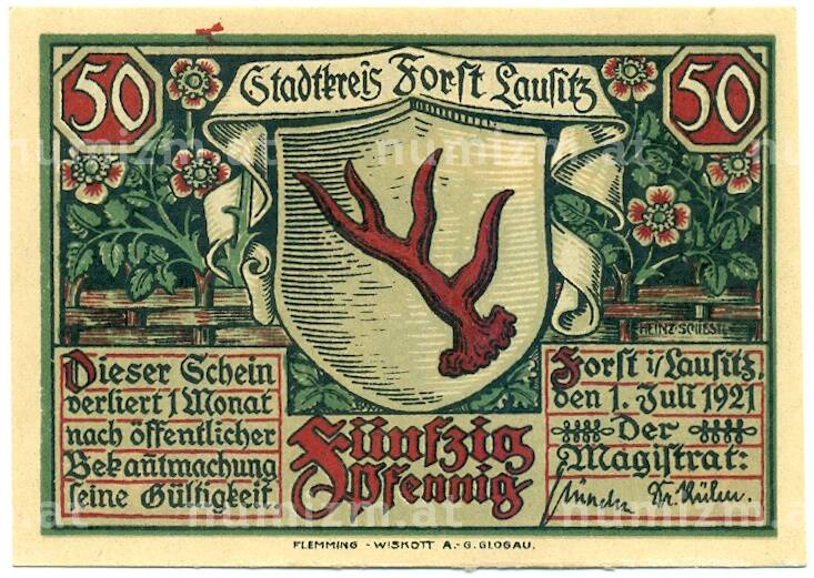 • Банкнота 50 пфеннигов 1921 года Германия — Форст / Лужица (Нотгельд) (Артикул: K10-11739) — Фото №1 Банкнота 50 пфеннигов 1921 года Германия — Форст / Лужица (Нотгельд) (Артикул: K10-11739) — Фото №2