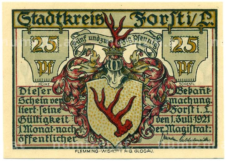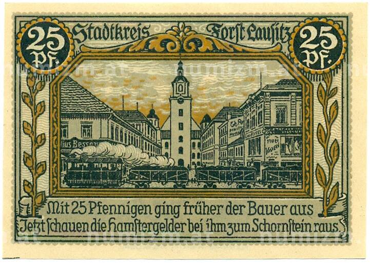 Банкнота 25 пфеннигов 1921 года Германия — Форст / Лужица (Нотгельд) (Артикул: K10-11755): подробные характеристики, качественные фотографии в высоком разрешении, низкая цена.