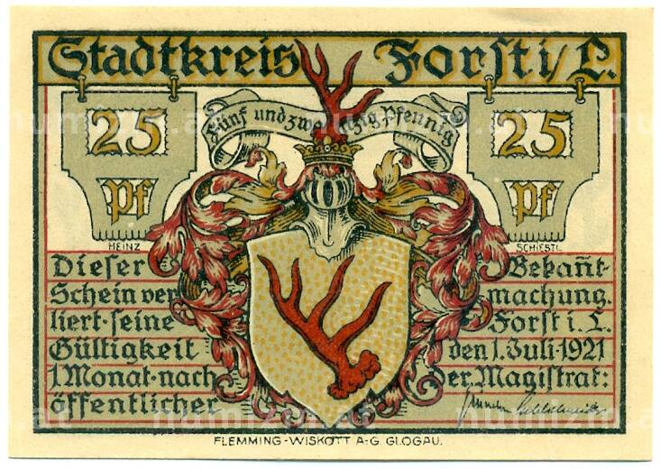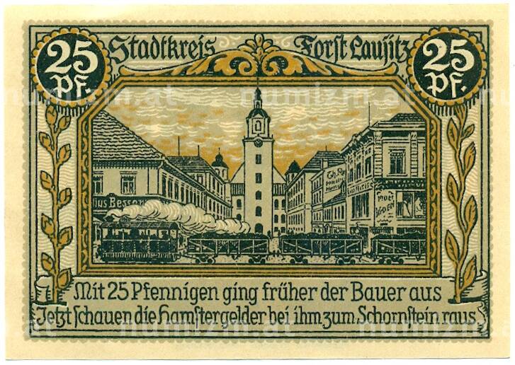 Банкнота 25 пфеннигов 1921 года Германия — Форст / Лужица (Нотгельд) (Артикул: K10-11756): подробные характеристики, качественные фотографии в высоком разрешении, низкая цена.
