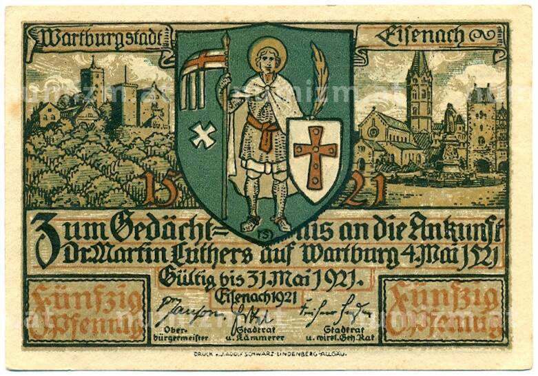 Банкнота 50 пфеннигов 1921 года Германия — город Эйзенах (Нотгельд) (Артикул: K10-11781): подробные характеристики, качественные фотографии в высоком разрешении, низкая цена.