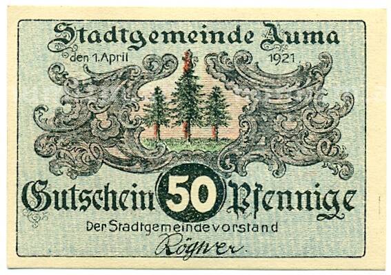 Купить 50 пфеннигов 1921 года Германия — город Аума (Нотгельд) по привлекательной цене можно в нашем интернет-магазине — Вам достаточно оформить заказ на сайте. Все монеты, представленные в каталоге, находятся в наличии на нашем складе.