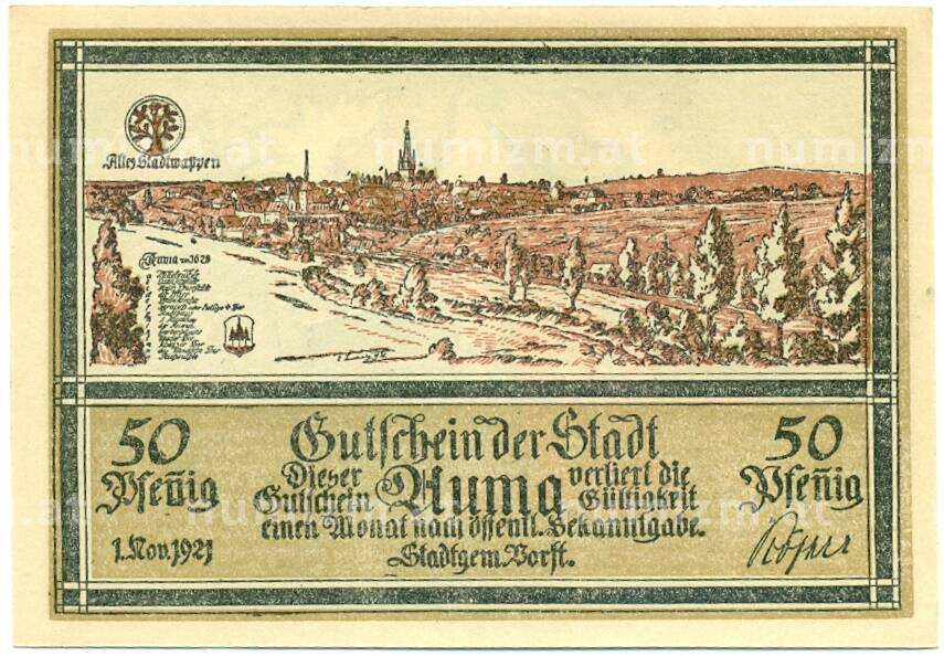 Банкнота 50 пфеннигов 1921 года Германия — Аума (Нотгельд) (Артикул: K10-11840): подробные характеристики, качественные фотографии в высоком разрешении, низкая цена.