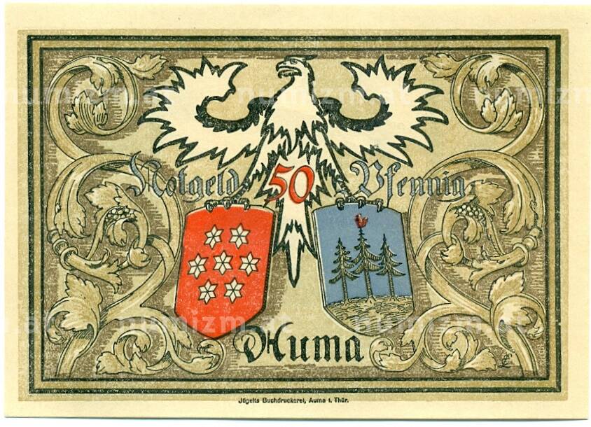 • Банкнота 50 пфеннигов 1921 года Германия — Аума (Нотгельд) (Артикул: K10-11866) — Фото №1 Банкнота 50 пфеннигов 1921 года Германия — Аума (Нотгельд) (Артикул: K10-11866) — Фото №2