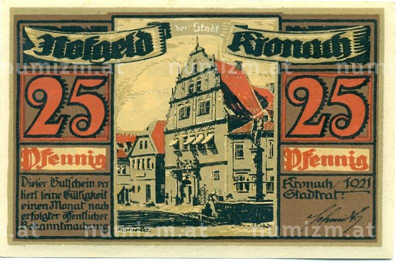 Купить 25 пфеннигов 1921 года Германия — Кронах (Нотгельд) по привлекательной цене можно в нашем интернет-магазине — Вам достаточно оформить заказ на сайте. Все монеты, представленные в каталоге, находятся в наличии на нашем складе.