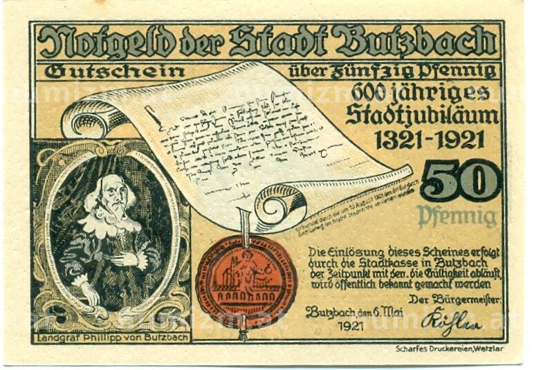 Интернет магазин «Нумизмат» предлагает приобрести 50 пфеннигов 1921 года Германия — Буцбах (Нотгельд).