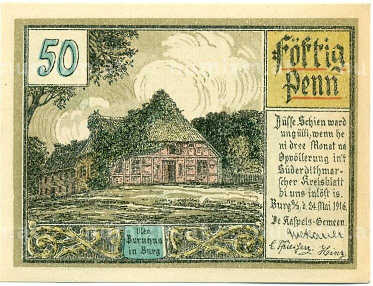 Купить 50 пфеннигов 1916 года Германия — Бург (Нотгельд) по привлекательной цене можно в нашем интернет-магазине — Вам достаточно оформить заказ на сайте. Все монеты, представленные в каталоге, находятся в наличии на нашем складе.